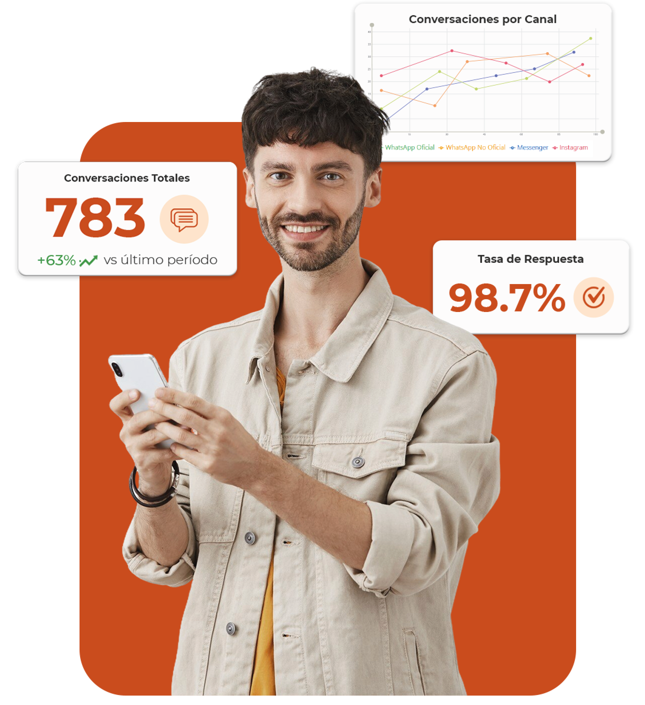 Conecta con tus clientes desde WhatsApp, Facebook, Instagram y Email en un solo lugar.